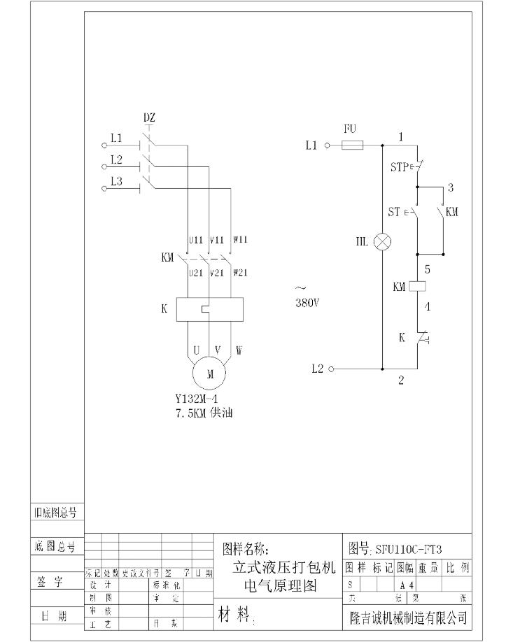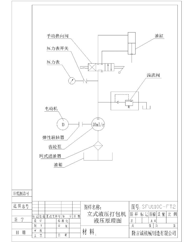 3.4液壓油箱部件安放在打包機架右側(cè),用兩根高壓軟管分別聯(lián)接機架上油管和油箱的進出口。