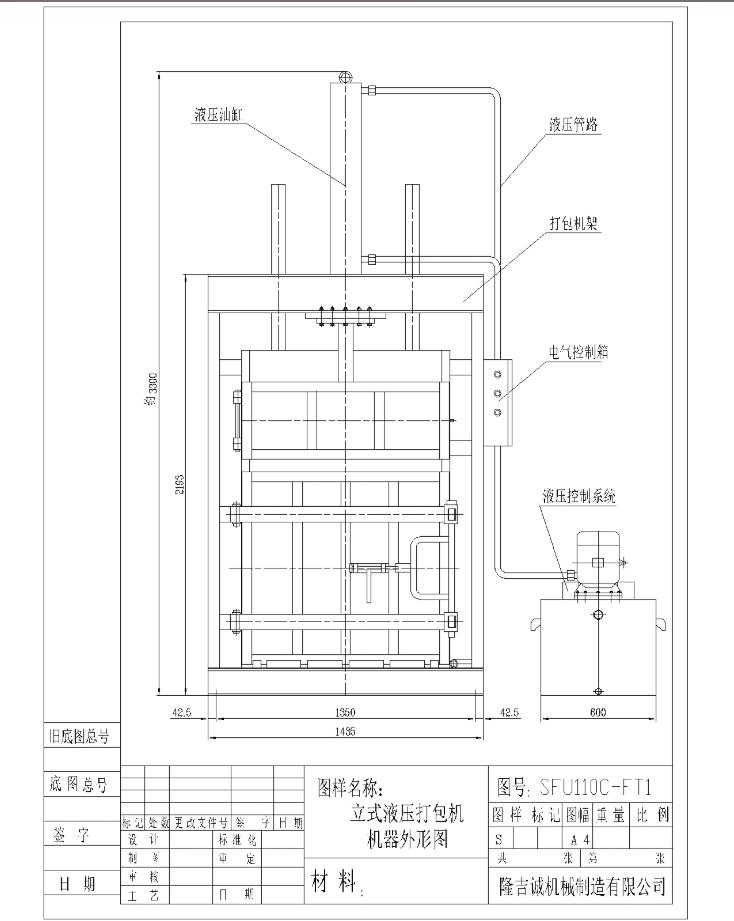 3.1本機主要由打包機架、液壓系統(tǒng)及電氣控制系統(tǒng)等三大部分組成。