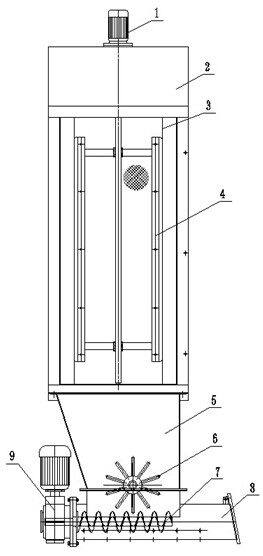 After separation by filter bag and shaking through brush cage, dust and short fiber in air flow goes into a barrel and is compacted by screw rod into compressed status. Lastly, they will be drained out.